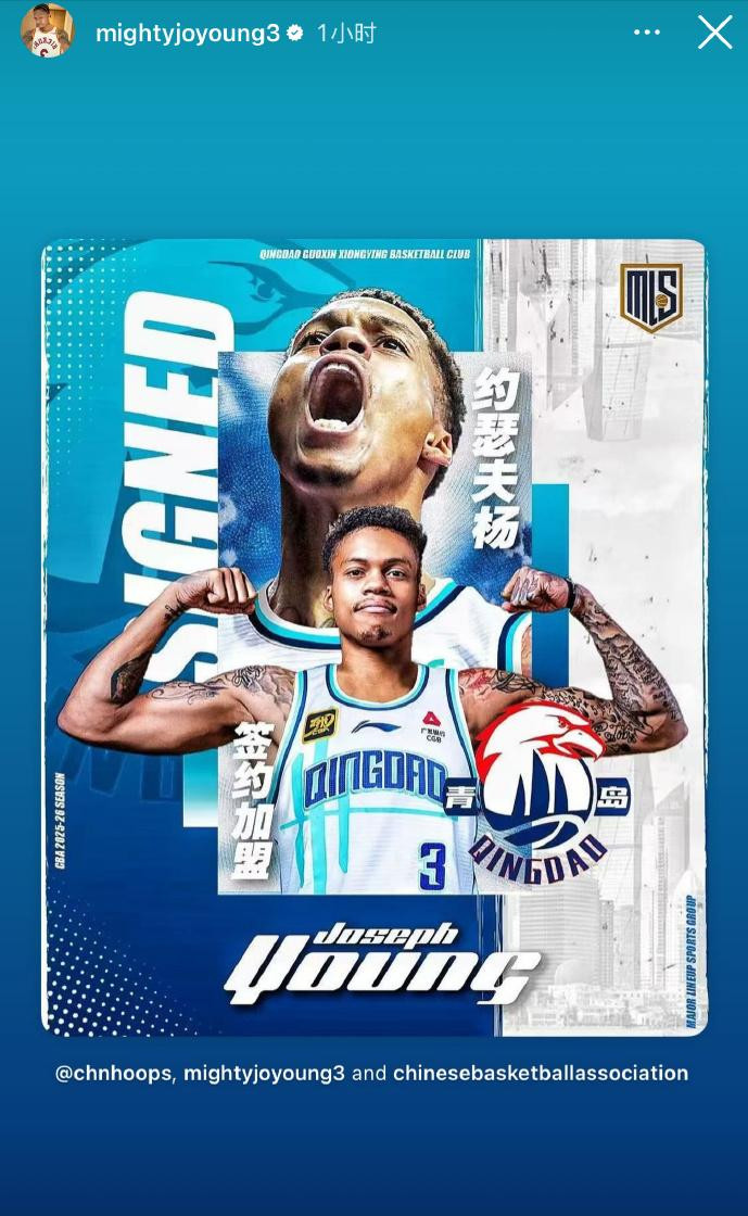 约瑟夫-杨在社媒官宣加入CBA青岛男篮,至此,青岛男篮新赛季四名外援全部确定,分别是韦瑟斯庞、约瑟夫-杨、米奇、汤普森,两名小外援,两名大外援,配置还是比较合理的,而且外援的能力都不错。