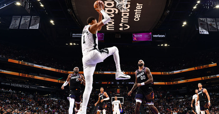 维克托-文班亚马此役在太阳的严密防守下陷入挣扎,全场14中4仅得9分9篮板4盖帽6失误。