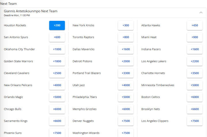 北京时间1月29日,随着Shams报道字母哥准备交易离队,雄鹿也愿意听取报价,这位希腊球星的去向很快成为焦点。随后,字母哥的下家赔率出炉,火箭高居榜首,尼克斯排名第2,勇士位居第10,湖人排名第12。以下是具体赔率排名——