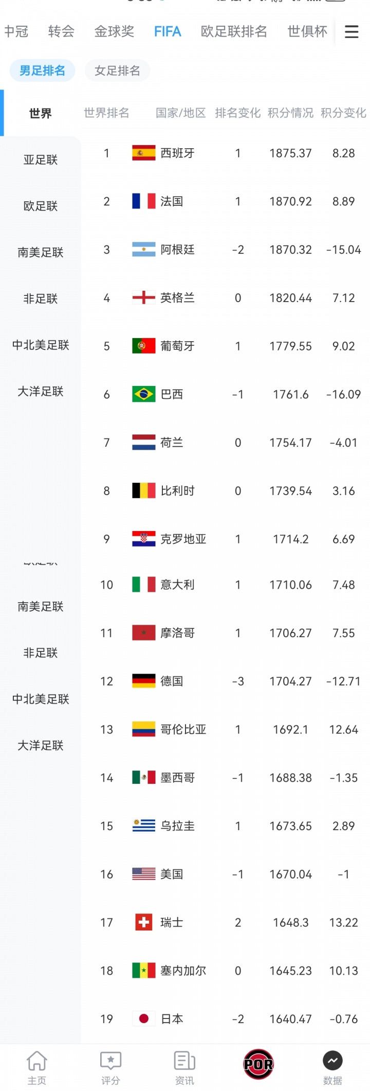 巴西排名第6! 日本目标世界杯冠军 前18名谁能稳赢第19的日本队?